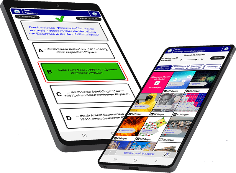 - Im Trainingsmodus werden alle Quizfragen der ausgewählten Wissensgebiete nach dem Zufallsprinzip